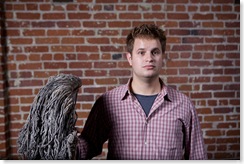 For this particular BarCamp we had a fantastic chap by the name of Mr. Dave Bullock of eecue.com fame snapping portraits of everyone there. He was even kind enough to play along and take this American Gothic-esque photo of me and said mop, that by the way wreaked of death.